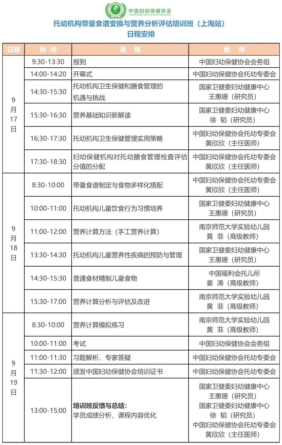 为贯彻国家卫生健康委员会《健康儿童提升计划(2021—2025年)》中对学龄前儿童健康发展的要求,加强对托幼机构学龄前儿童膳食管理和指导,中国妇幼保健协会托幼机构儿童保健专业委员会将于2025年9月17日—19日在上海市开展“托幼机构带量食谱变换与营养分析评估培训班”。