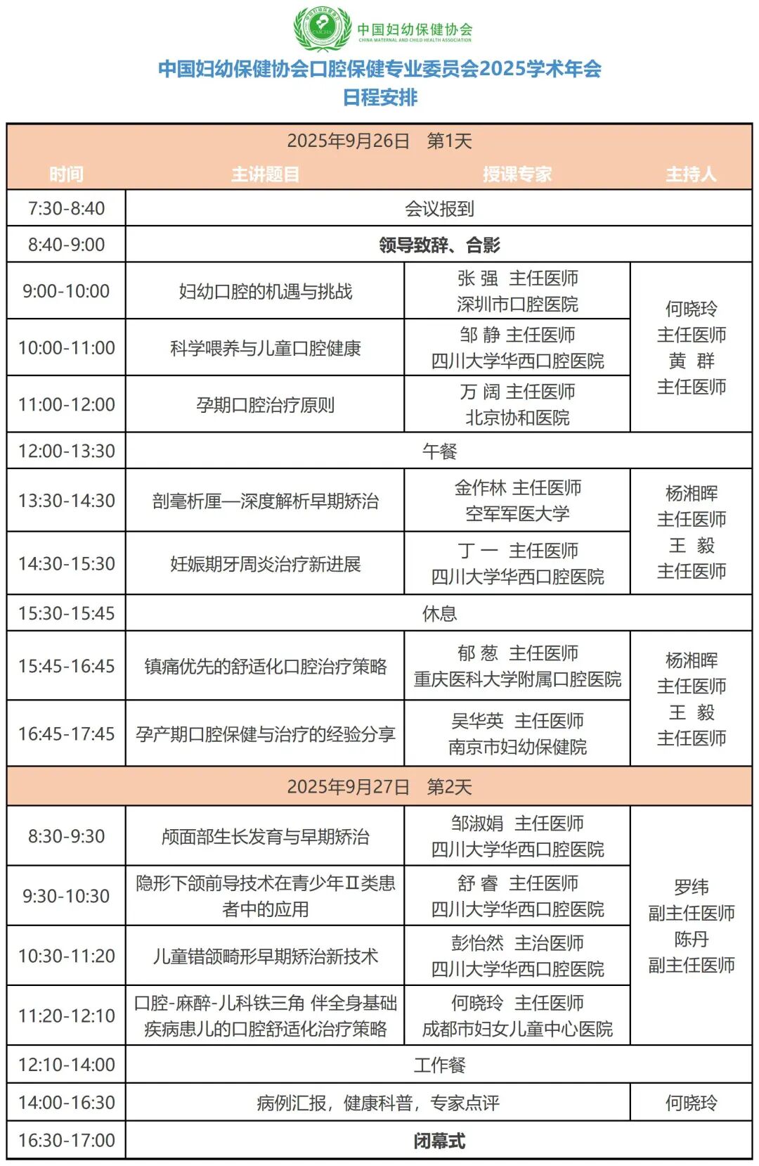 为进一步提高妇幼机构口腔疾病的规范化诊疗与保健水平,加强妇幼口腔保健服务体系建设及人才培养,中国妇幼保健协会口腔保健专业委员会第二届第三次学术年会拟于2025年9月26-27日在四川成都举行。