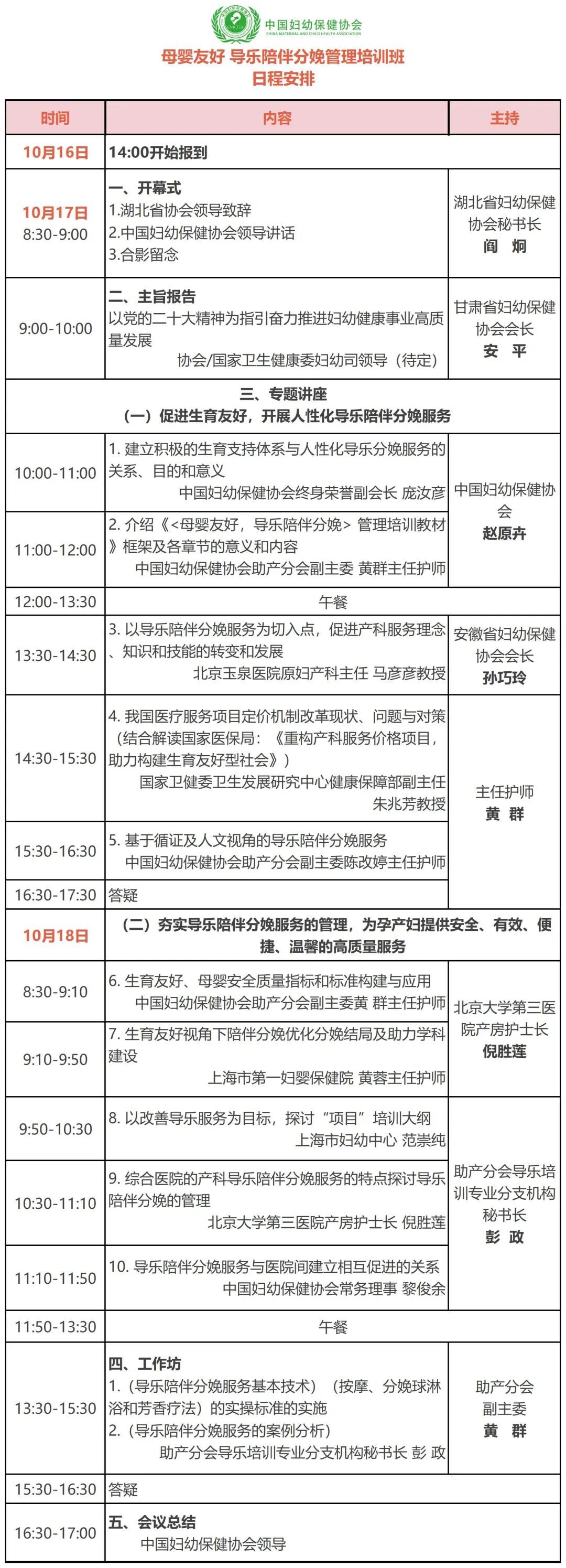 中国妇幼保健协会于2011年开展了“推广助产适宜技术—导乐 分娩”项目,至今全国大多数助产机构开展了以产妇为中心的人性化、专业化的导乐陪伴分娩服务。这种服务满足了产妇和家庭的需求,改善了医患关系,顺应了医学的发展,带动了产科的变革和发展;在新的生育形势下导乐陪伴分娩服务是构建积极生育支持体系,提升产妇分娩体验的一个重要内容。为建立有效的导乐陪伴分 娩服务管理体系及机制,中国妇幼保健协会定于2025年10月16日-18日在武汉举办“母婴友好导乐陪伴分娩管理培训班”。
