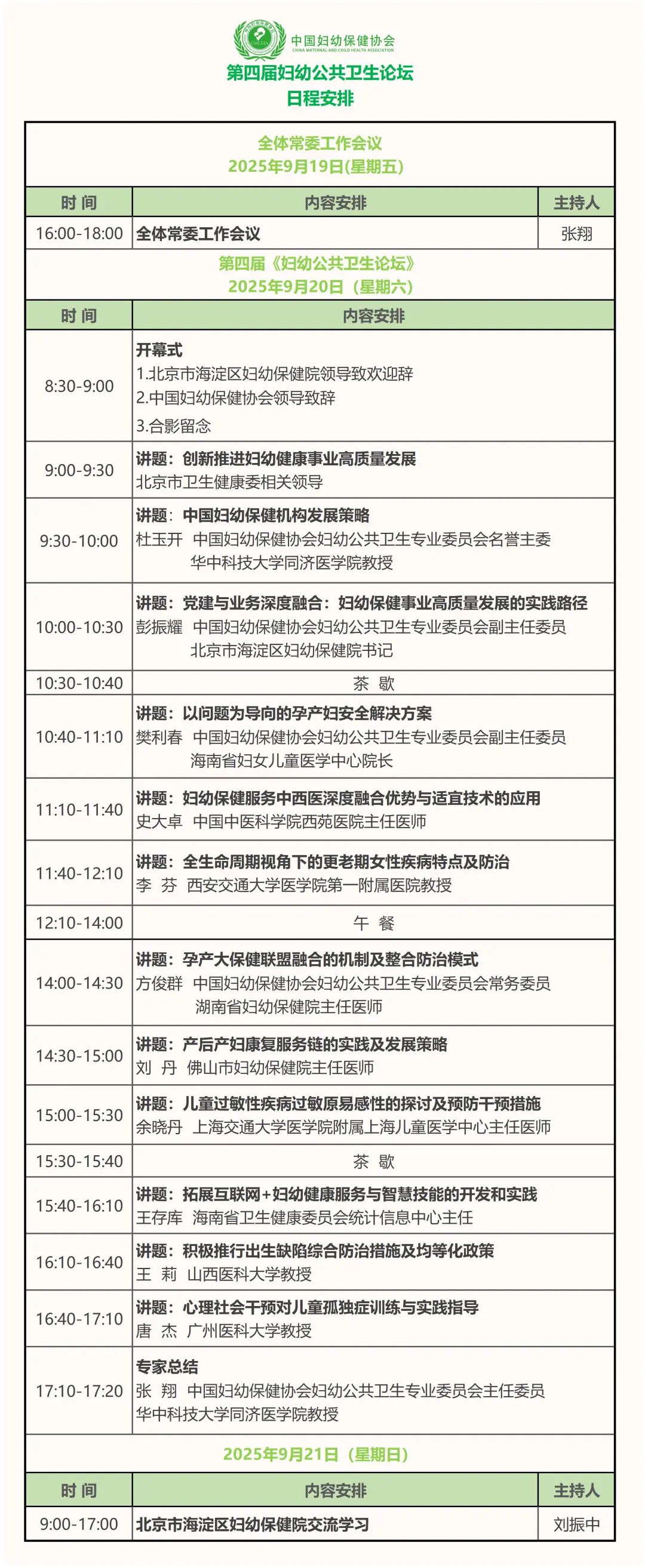 中国妇幼保健协会妇幼公共卫生专业委员会决定于2025年9月20日-21日在北京市隆重举办第四届妇幼公共卫生论坛,这是一次以妇女儿童健康为中心,聚焦妇幼公共卫生领域前沿课题与实践经验的盛会,旨在凝聚行业智慧力量,共商妇幼健康服务创新发展之路,为构建更高水平的妇幼健康服务体系、实现妇女儿童健康权益的充分保障以及促进社会的可持续发展提供坚实支撑。