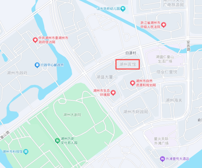 浙江省湖州市吴兴区仁皇山路515号,距离市中心直线542米)