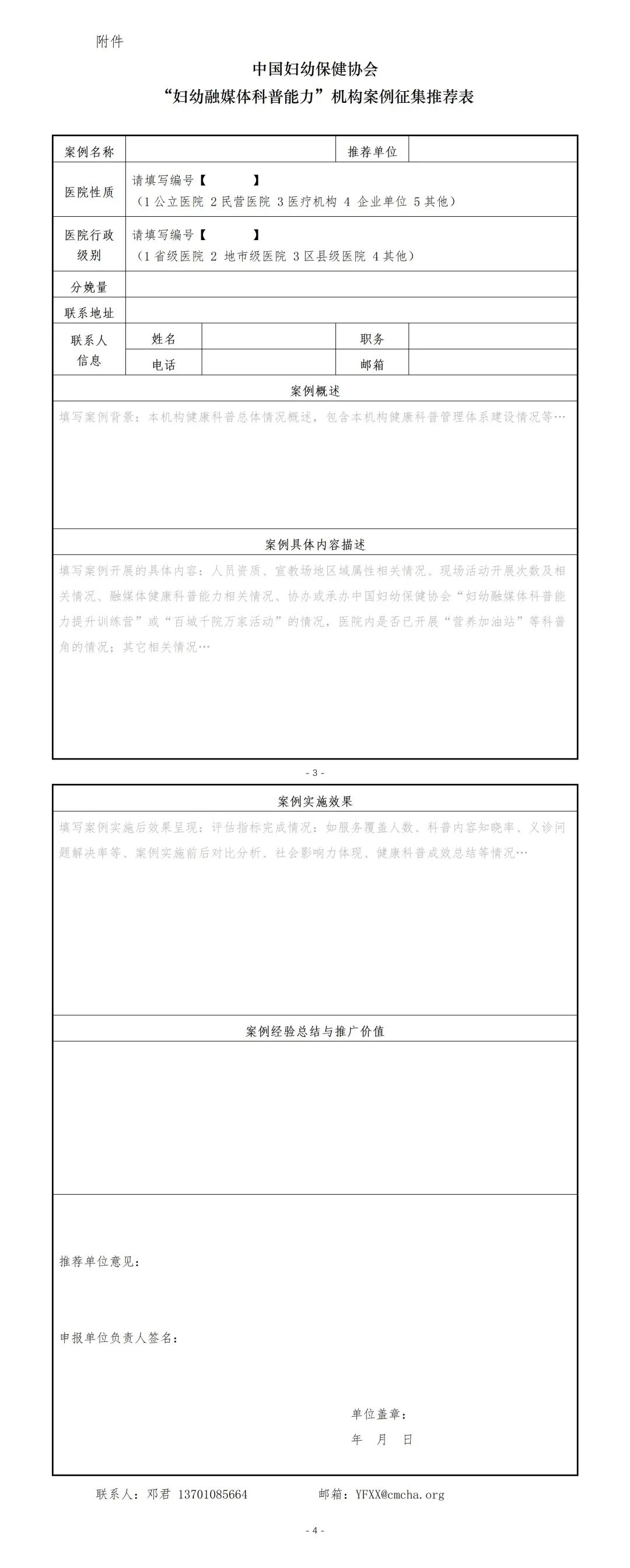 各级妇幼保健机构、相关医疗机构及协会会员单位,根据案例推荐表(附件)报送案例。