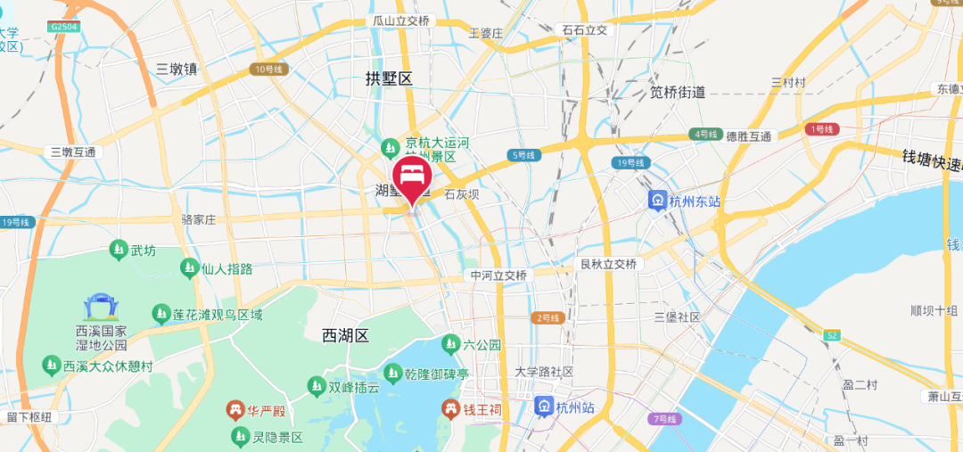 →方法4:乘坐机场巴士至武林门站,换乘地铁2号线至沈塘桥站出站,往北步行500米至酒店。