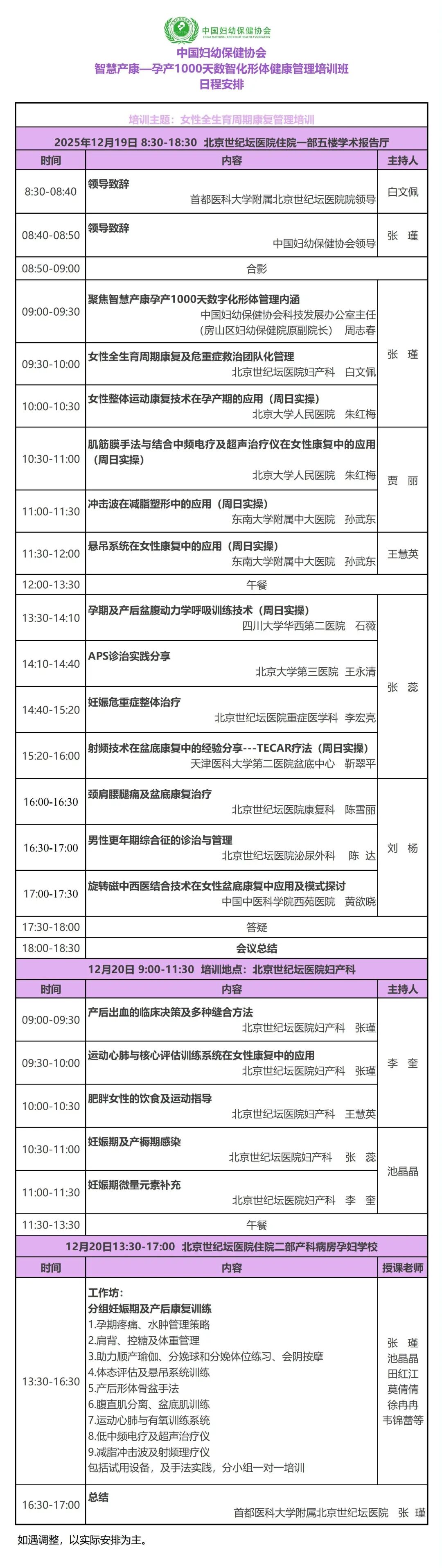 为进一步强化临床医生在女性生育健康领域的专业能力,推动全生育周期康复管理规范化、标准化发展。中国妇幼保健协会2024年11月组织开展了“智慧产康—孕产1000天数智化形体健康管理”项目,按照工作计划,协会定于2025年12月19日-20日在首都医科大学附属北京世纪坛医院举办“智慧产康—孕产1000天数智化形体健康管理培训班”,本次培训班主题是女性全生育周期康复管理培训。