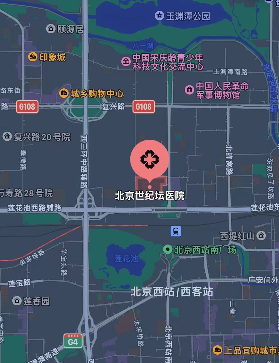■乘坐地铁9号线至军事博物馆站(G东南口出),步行至首都医科大学附属北京世纪坛医院。