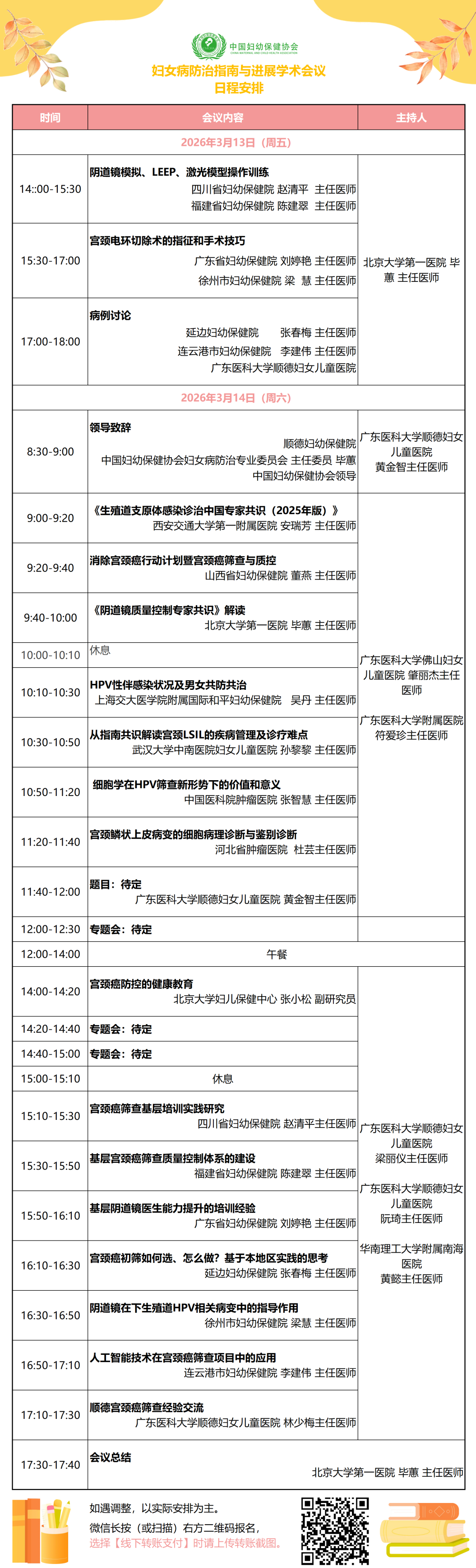 阴道镜实操培训限60人,请参会人员于2026年3月6日前登录中国妇幼保健协会服务号进行注册、报名。