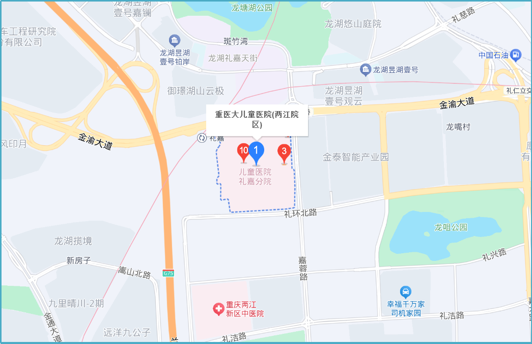 全季酒店距离重庆医科大学附属儿童医院(两江院区):1.1公里,步行12分钟。
