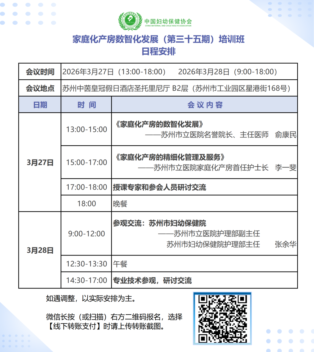 3月27日-28日.江苏苏州 | 家庭化产房数智化发展(第三十五期)培训班