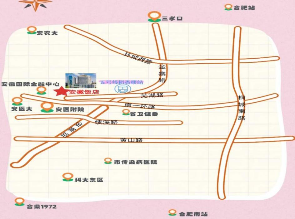 公交:乘51路(合肥南站上,安医站下,18站),下车向东北360米,至安徽饭店(约11公里/50分钟);