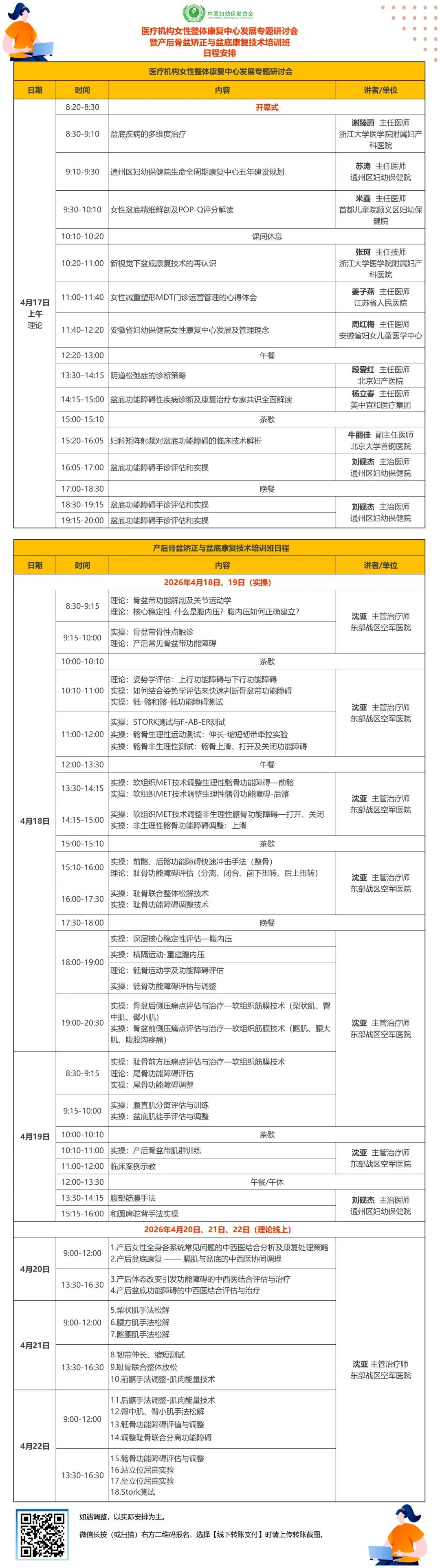 女性健康是全民健康的重要基石,也是十五五计划重点民生部署内容。为结合十五五推动医疗机构转型要求,拓展女性康复服务成为医院可持续发展的趋势。为助力友好医院,规范康复诊疗,提升从业人员能力,中国妇幼保健协会盆底康复专业委员会定于2026年4月17-19日在北京举办“医疗机构女性整体康复中心发展专题研讨会暨产后骨盆矫正与盆底康复技术培训班”。