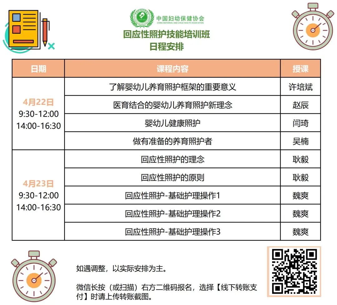 为深入贯彻落实《“健康中国2030”规划纲要》《关于促进3岁以下婴幼儿照护服务发展的指导意见》《婴幼儿早期发展服务指南(试行)》等相关政策要求,推动婴幼儿养育照护服务高质量发展,中国妇幼保健协会定于2026年4月22日—24日在线上举办“回应性照护技能培训班”。
