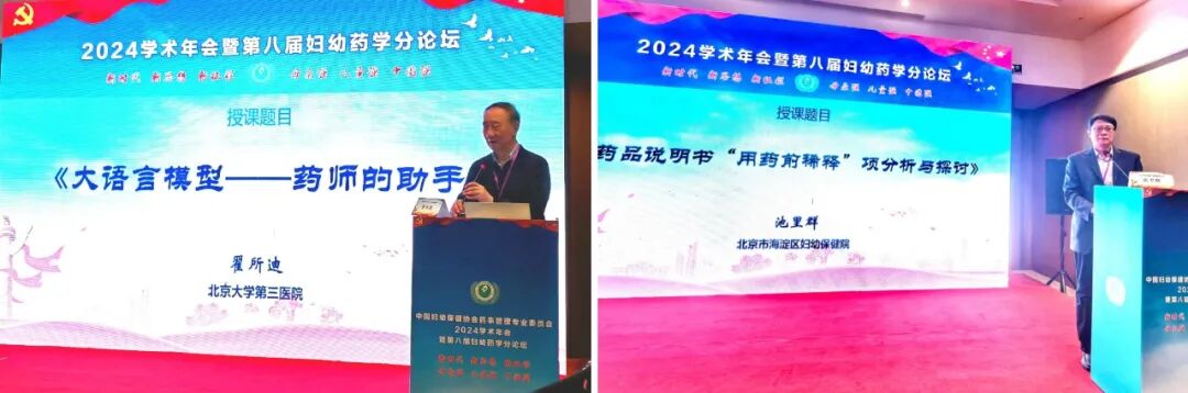 论坛邀请了北京大学第三医院翟所迪教授、北京市海淀区妇幼保健院池里群教授、上海市第一妇婴保健院张海教授、浙江大学医学院附属妇产科医院郑彩虹教授、达因高科儿童药物研究院杨杰院长、湖南省妇幼保健院文晓柯教授、中国医科大学附属盛京医院杨清教授、首都医科大学附属北京妇产医院冯欣教授、江苏省人民医院吴洁教授、北京大学第三医院杨毅恒教授、四川省妇幼保健院李根教授、徐州市妇幼保健院石祥奎教授共12位讲者分别在大语言模型作为药师助手的作用、药品说明书“用药前稀释”项分析与探讨、新医改政策下妇产科临床药师转型之路、以降低患者就医成本为导向的新型药品计价收费体系的构建与实践、基于临床需求的儿童改良型新药研发、药师的专业素养与个体化药学服务实践、去氧孕烯炔雌醇片的临床应用、围孕期药学门诊建设与实践、最低有效剂量,谱写绝经激素治疗长期管理优先方案、医院药学质控助力医院高质量发展、妇幼人群钙剂补充合理用药、构建妇幼药学服务新模式,助力医院高质发展等方面做了精彩报告。